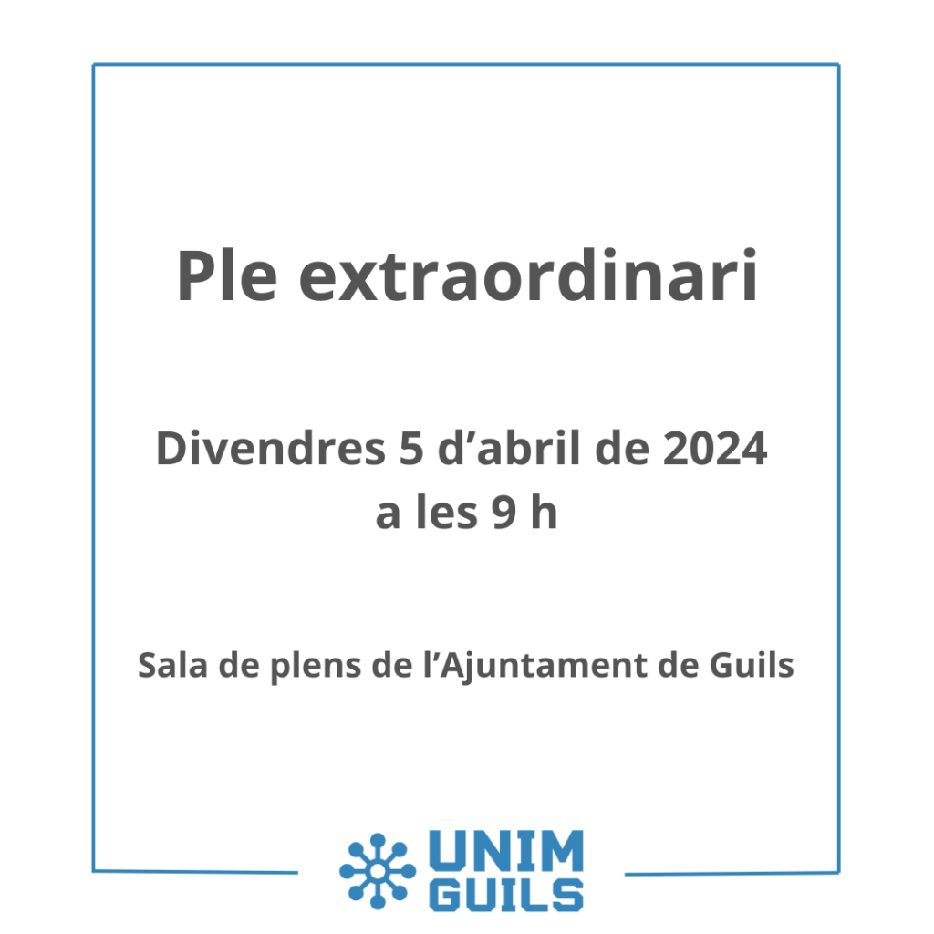 Adjuntem la convocatòria del ple extraordinari d’aquest divendres 5 d’abril de 2024 a les 9h del matí, a la Sala de Plens de l’Ajuntament de Guils. Volem compartir amb vosaltres alguns dels punts més rellevants que es portaran a votació:…